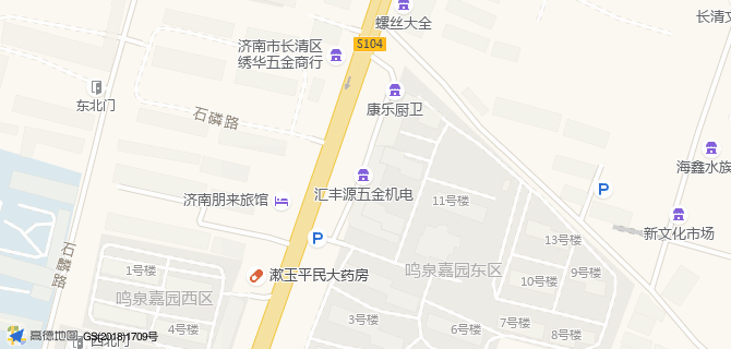济南市长清区文昌街道峰山路鸣泉嘉园门口向北20米汇丰源五金机电